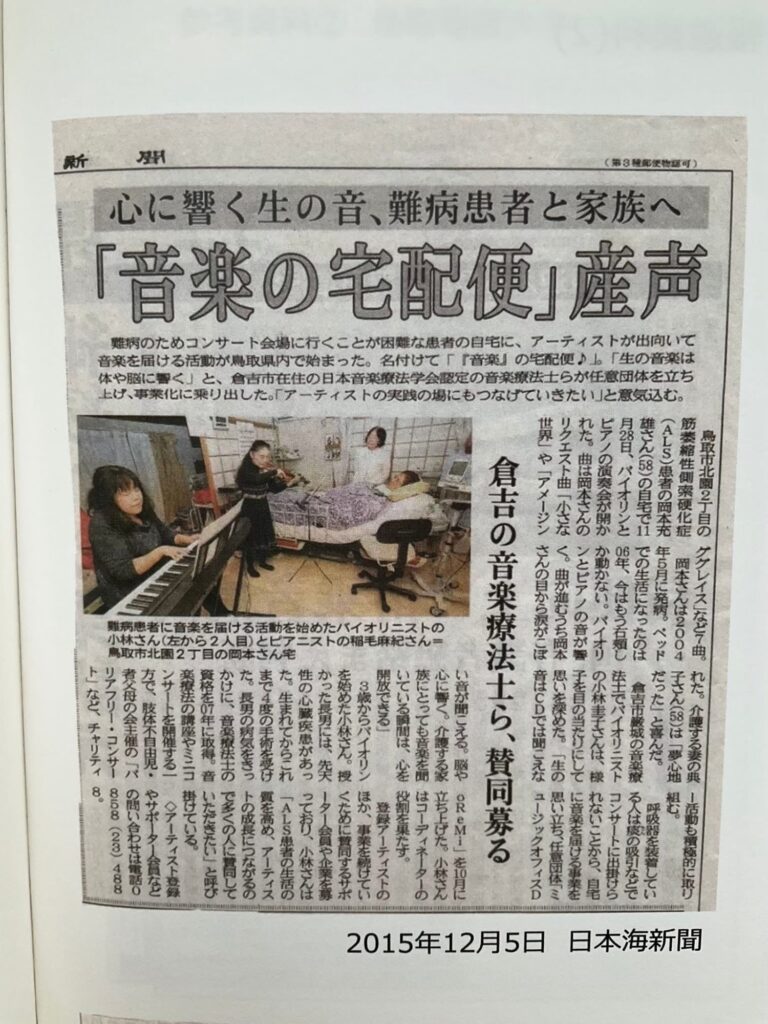 第1回「音楽」の宅配便♪(2015年11/28)実施から10年が経とうとしています。今までに実施した「音楽」の宅配便♪は30回を数えます。数々の奇跡やクライエントさまからの「音楽は人を救う」「生きててよかった」などのお言葉に支えられて活動を重ねてくることができました。